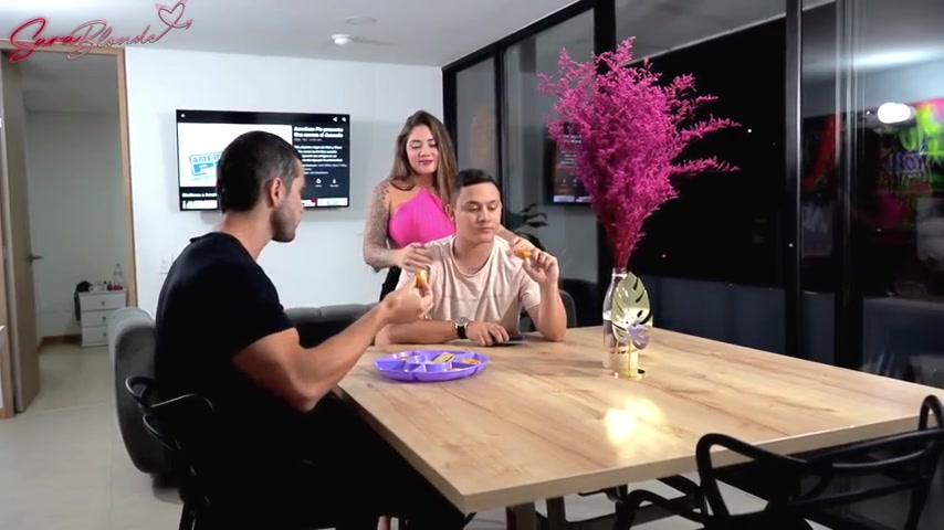 Slut- sara-blonde- fucks husband's best friend behind his back while he watches movie