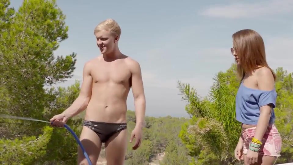 Young couple fucking at garden