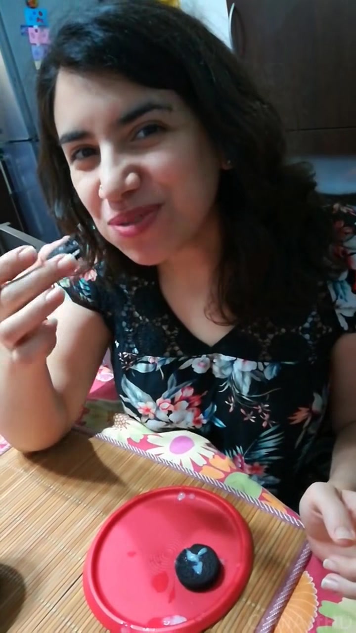 Indian Girl Eating Her BF's Cum On Oreo After Blowjob
