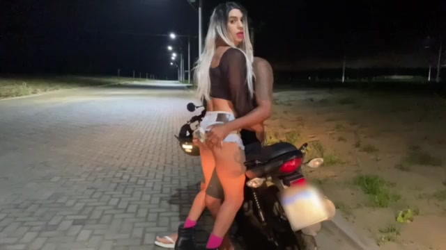 Brasileña folla en la calle encima de la moto. TRANSEXUAL